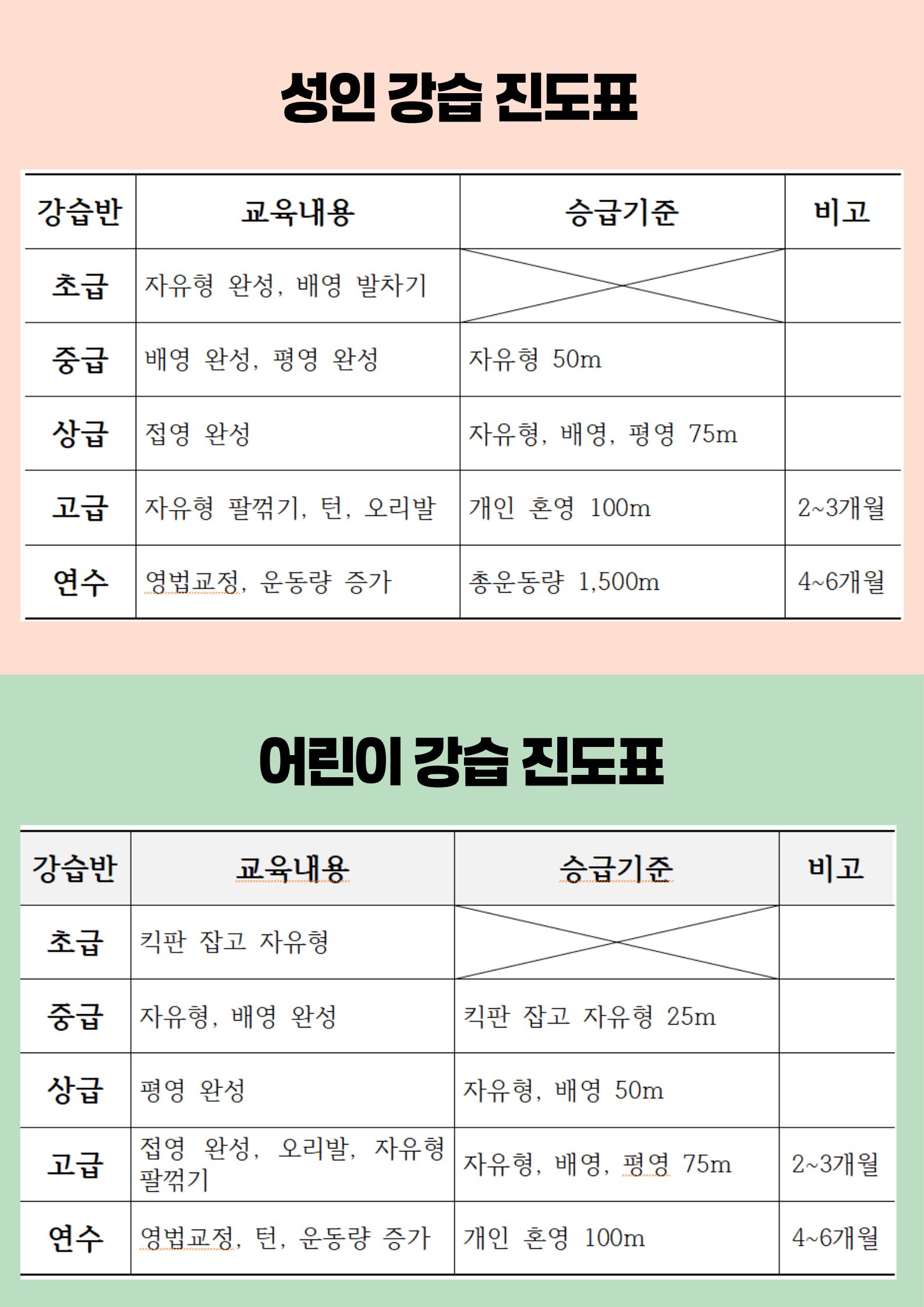 수영 강습 진도표
